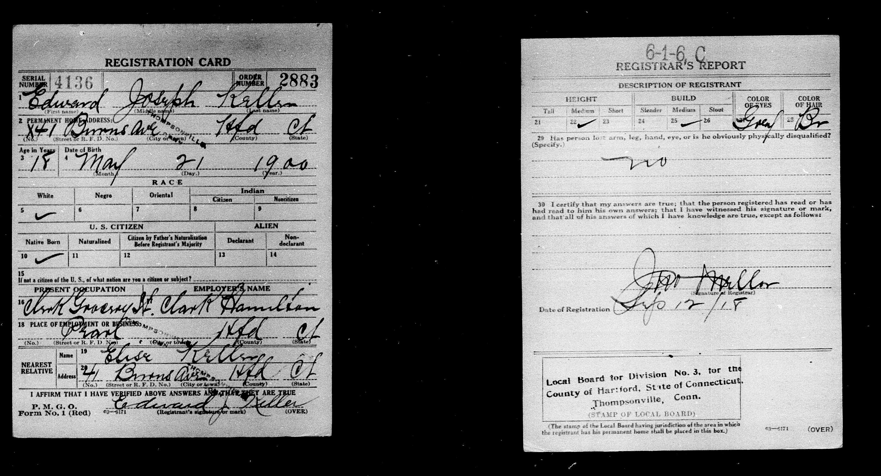 Edward Joseph Keller, Serial Number 4136, Order Number 2883